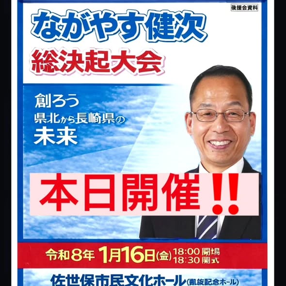 本日開催!!/ながやす健次総決起大会のお知らせ