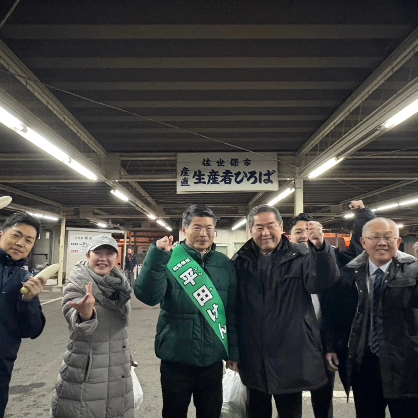 2026年1月24日(土)早朝、万津町で開催された『佐世保朝市』へ、平田研県知事候補とともにおじゃましました。